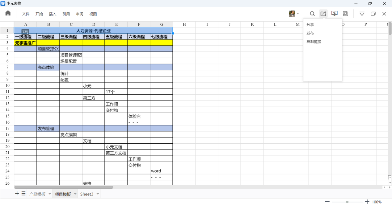 h用于服务项目平台的办理、验收、流程审批和事项报备,主平台的资源管理(人力资源管理、设备资源管理、实物量资源管理、库存环境资源管理、费用支出配置和费用收入配置)。通过组织身份平台、小元平台、第三方平台勾选,自动建立组织、平台间的上下游关系(元宇宙推广、业务执行融合、授权配置、客户追踪);