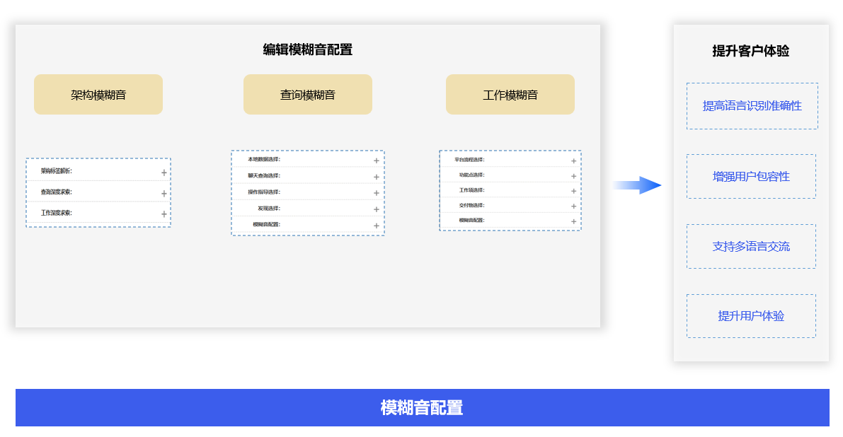 模糊音配置包括架构模糊音、查询模糊音、工作模糊音等模糊音配置,能够提高语音识别准确性、增强用户包容性。支持多语言交流,提高了机器人的识别能力,增强了用户体验。