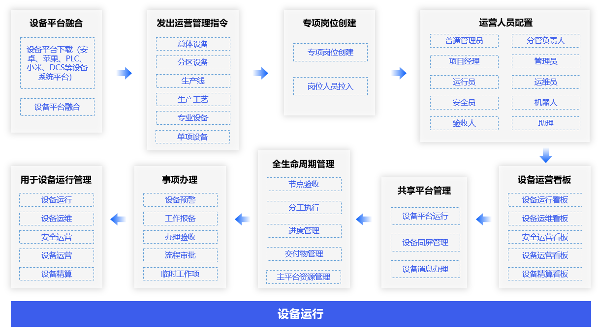 通过设备业务生态模型,自动建立对各类项目的运行、过程验收、进度管理、全生命周期管理和事项管理,实现去中心化的跨身份、跨环境和跨平台管理。