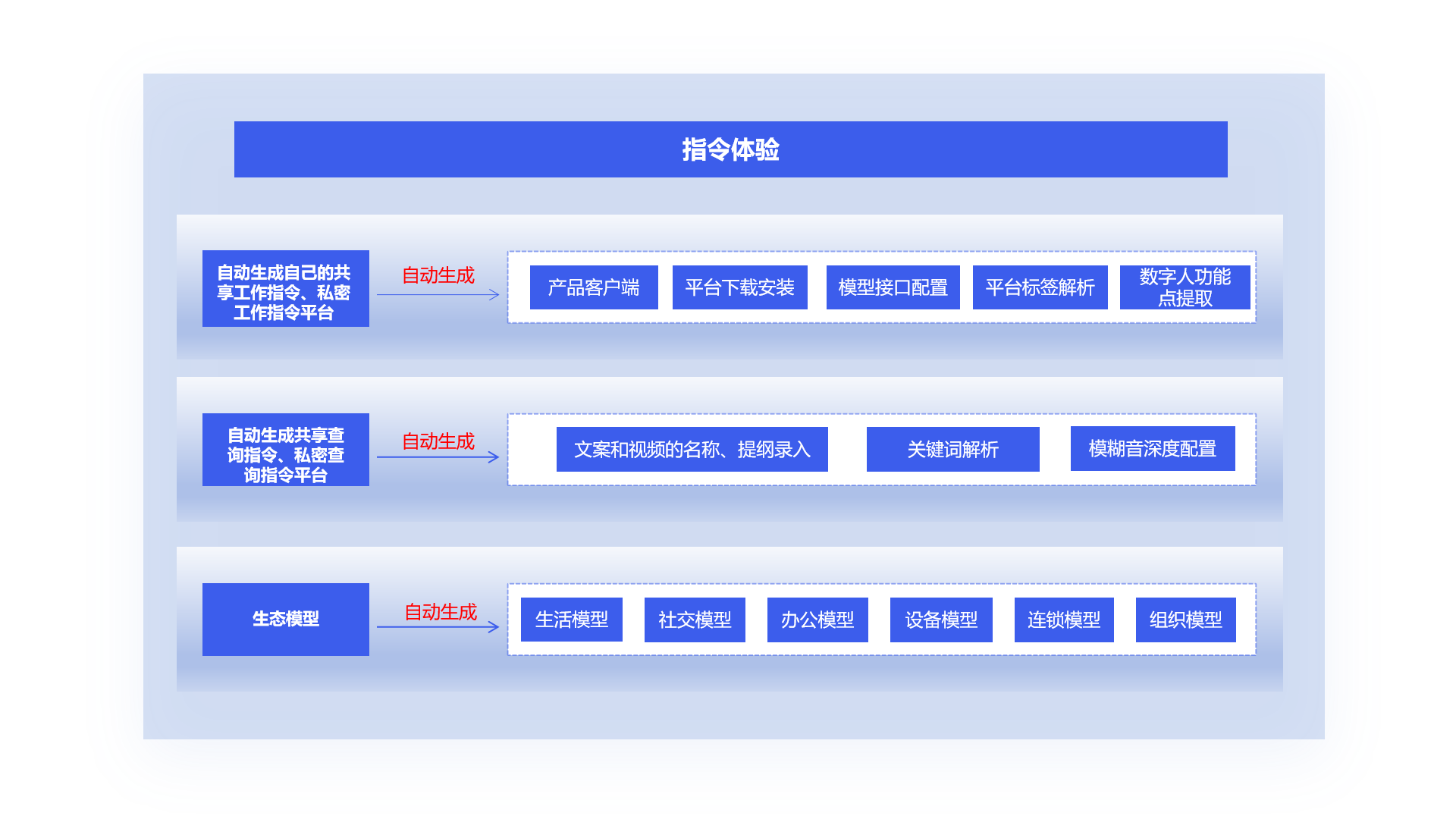 b文案和视频的名称、提纲录入、关键词解析,模糊音深度配置,自动生成共享查询指令、私密查询指令平台,用于生活指令管理;