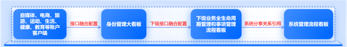 系:会员身份建关系,将来自不同环境、不同身份、不同平台的业务事项录入到组织架构平台,通过身份创建、互为账号、身份共享、数据同步,引用关系配置,建立身份关系,生成商圈、家族、专项、私密组织管理平台。