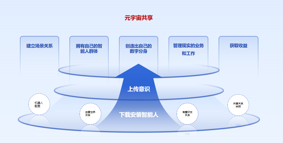 下载智能人、上传意识、机器人配置,自营世界关系、商圈好友关系、下级关系、家族关系、私密关系、分享关系、连锁关系、站点窗口关系、代购关系等共享关系映照,拥有自己的智能人群体。