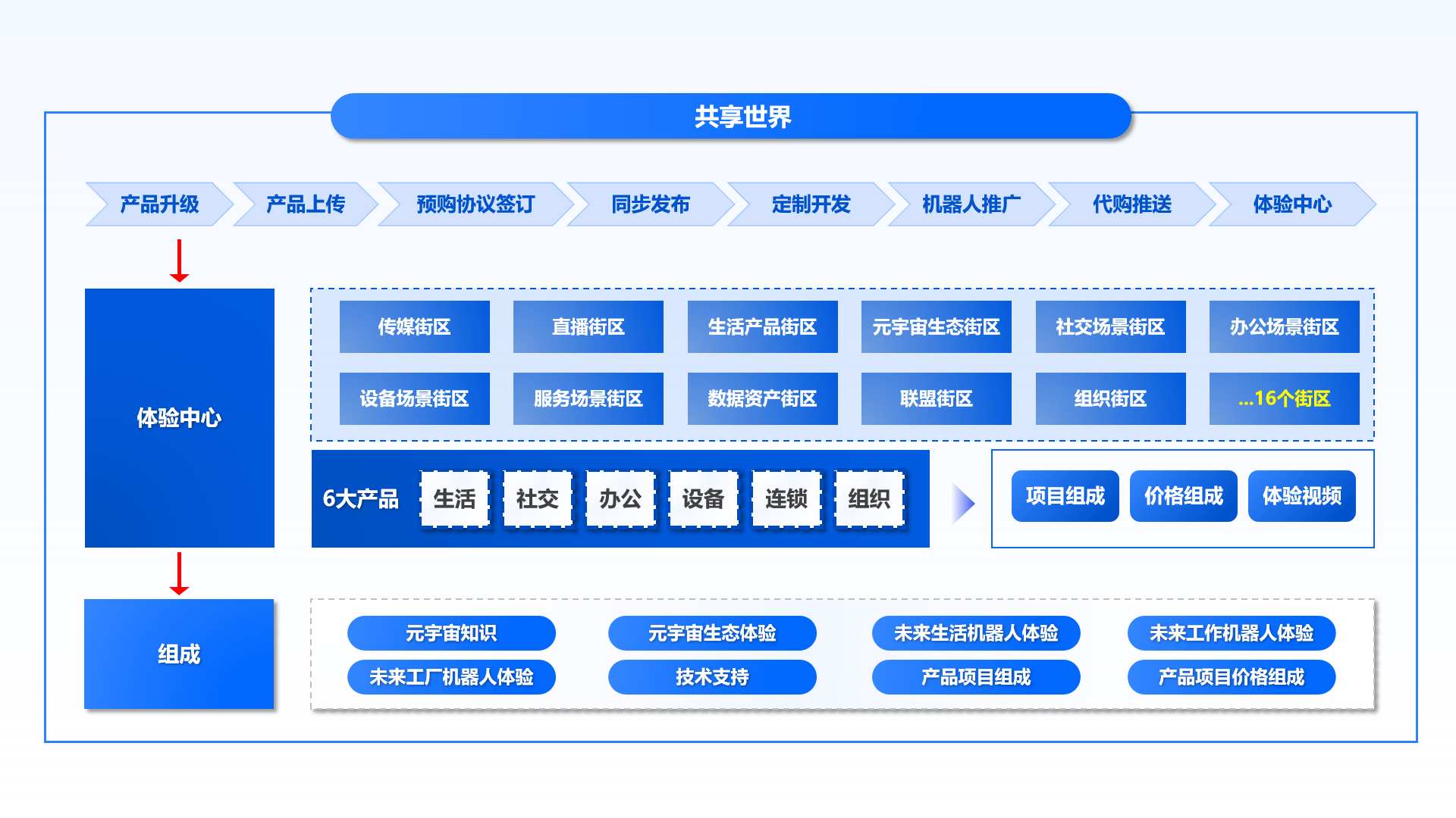 b设备、平台和项目等产品模型升级、数字人功能配置、机器人装配、共享世界体验,共同组成了元宇宙推广平台的体验中心、展示货架。