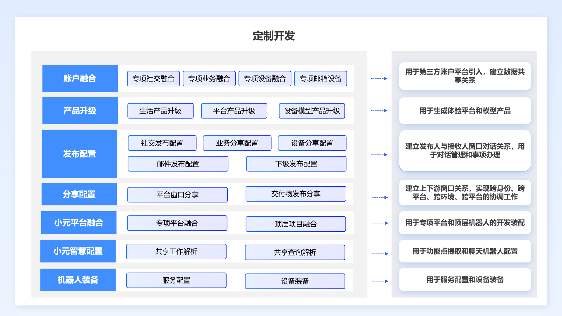 MCP生态大模型配置、数字人功能点提取、聊天机器人对接、机器人装备和服务配置、顶层机器人打通上下游关系、主平台和里程碑平台资源配置、生成的人工智能全智能管理大看板,共同组成了定制开发的业务管理全过程。